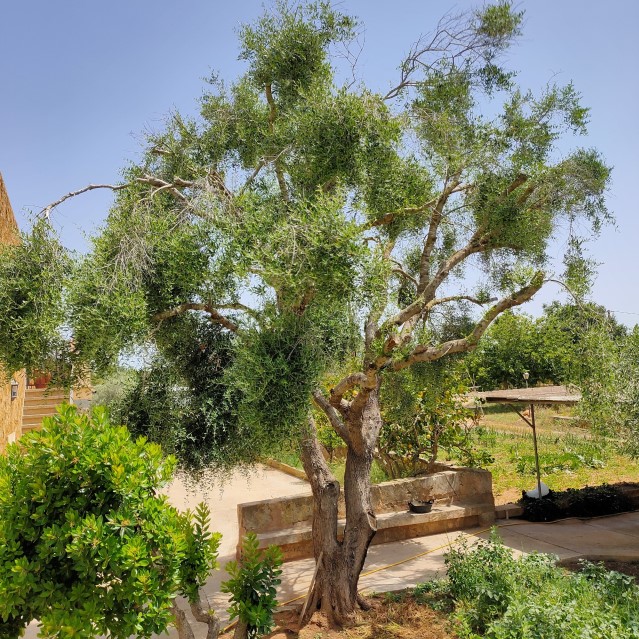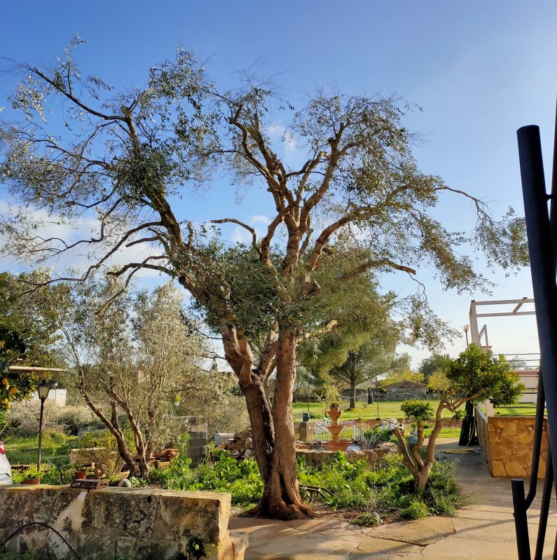 En Mallorca ya se ven afectados un volumen importante de achebuches, entre ellos uno de los que está en mi casa familiar de campo. El árbol afectado es un ejemplar de acebuche adulto de unos 40 años de edad.